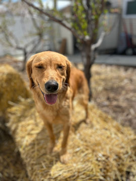 Sonrisa is such a special girl. She was a gift to us from our good friends at Soaring Golden Retrievers. She is out of one of my favorite all time dogs, Scarlet. If you know Scarlette, you know she smiles so big for her favorite friends Luckily, Sonrisa got her mother's smile. That is why her name is Sonrisa, which means Smile in Spanish. We just call her Reesey Puff or Risa. Sonrisa has a high drive and is very birdy. She is our adventure girl and is part goat we think. She likes to get up on the tramp and play games with all the dogs below her. She loves little puppies and will play all day with them. She is incredibly athletic and excels at any sport we do. She loves scent work and has been excelling in our classes. She is a good snuggle buddy and has really nice off-switch which makes her the perfect companion on hikes and then come home and relax. We are so excited for her future and love this girl so much.